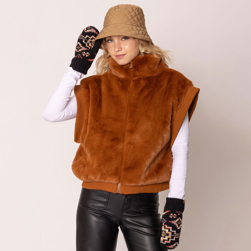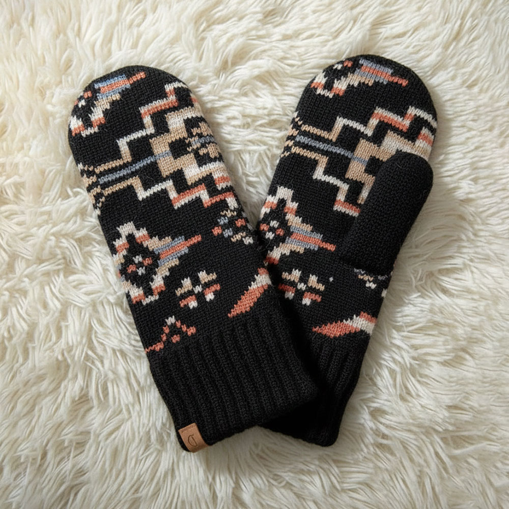 Ribbed Cuff Aztec Patterned Knit Winter Mittens