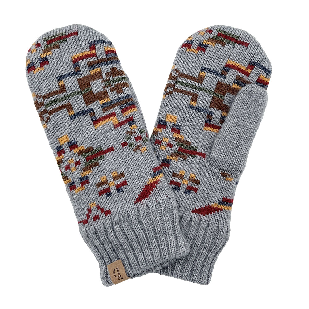 Ribbed Cuff Aztec Patterned Knit Winter Mittens Ribbed Cuff Aztec Patterned Knit Winter Mittens