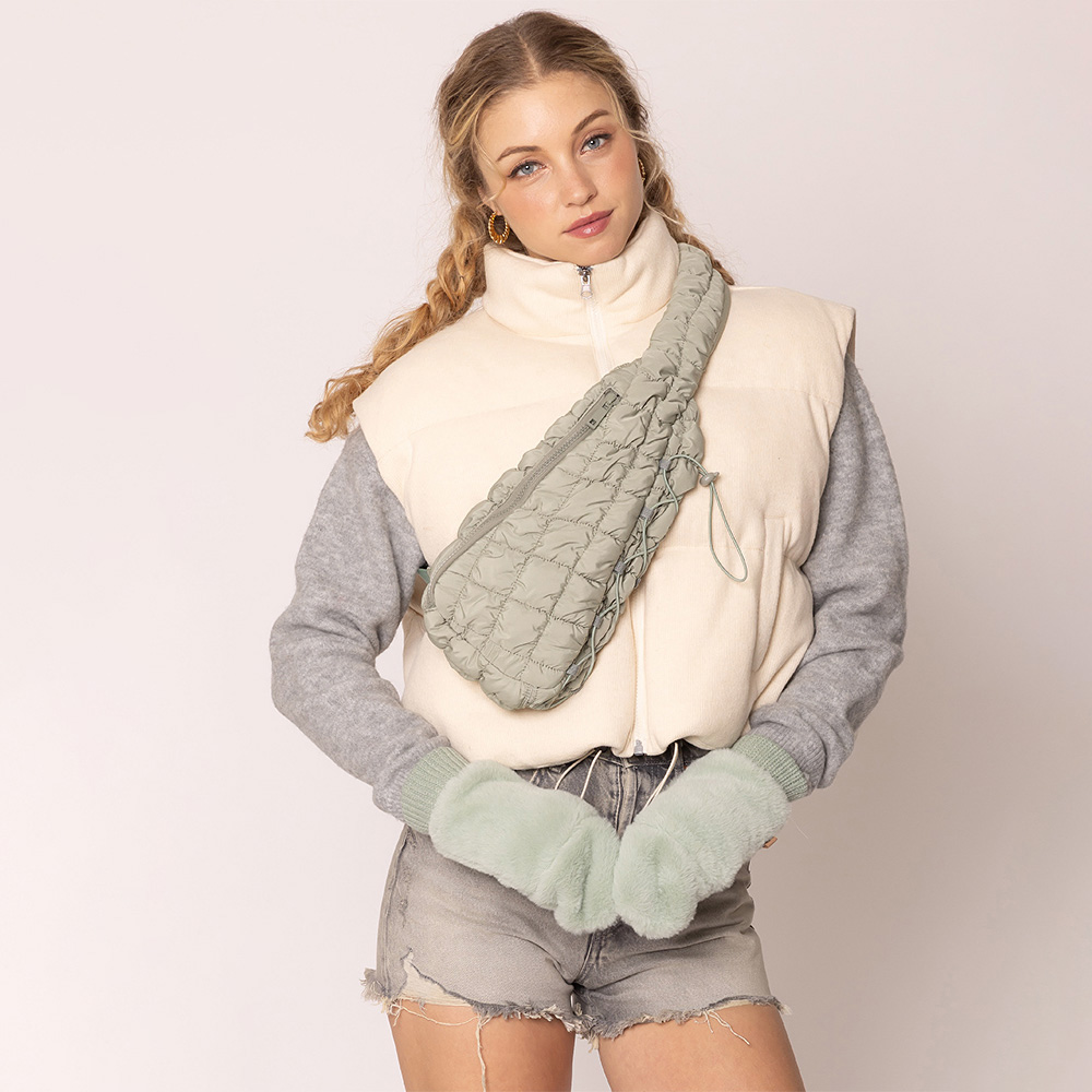 Reversible Sequin Soft Fur Wristlet Pouch Bag