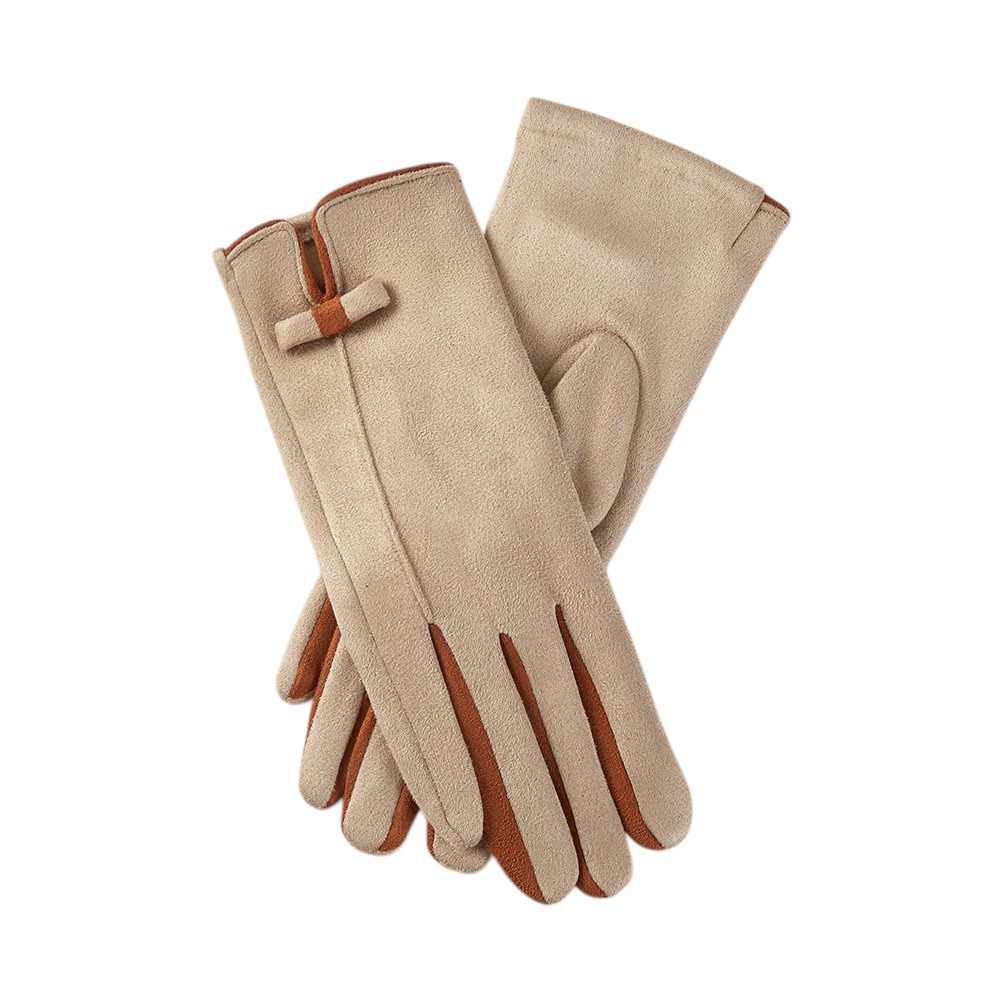 • Chic smart touch gloves designed with a stylish bow accent and contrast trim. Perfect for keeping hands warm while using touch screen devices, these gloves combine practicality with elegance, making them ideal for both casual wear and dressy occasions.