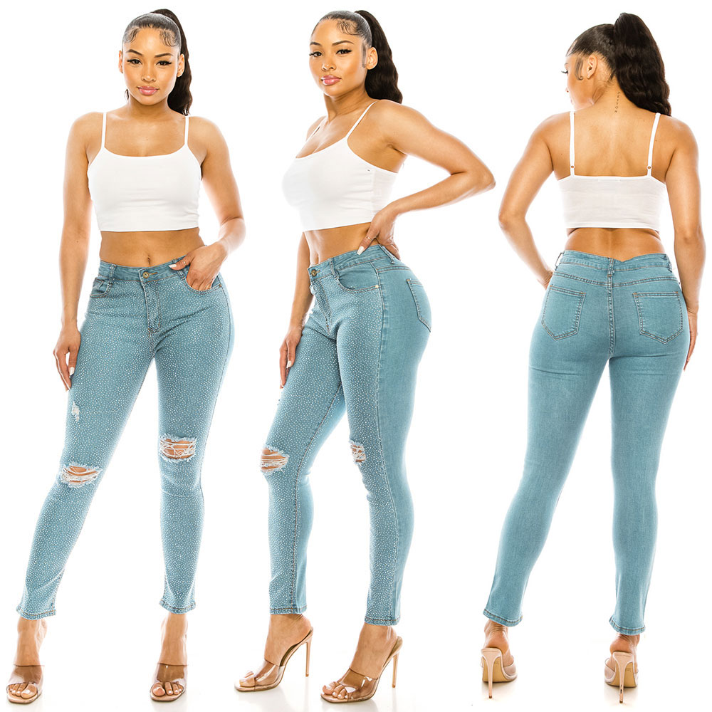 Bling Studded Destroyed Skinny Jeans