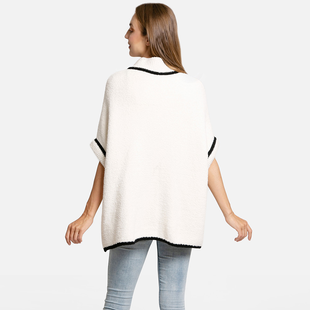 • Elevate your layering with this open-front cozy knit cape featuring convenient pockets and a relaxed silhouette. Perfect for transitional weather or lounging, this chic wrap combines warmth and effortless elegance.