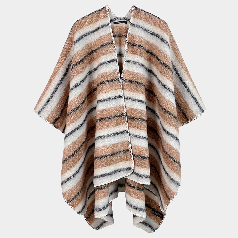 Cozy Striped Three Tone Ruana Poncho