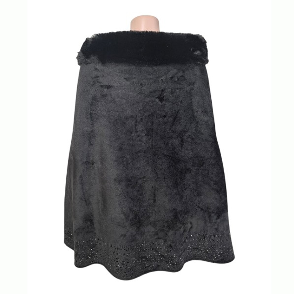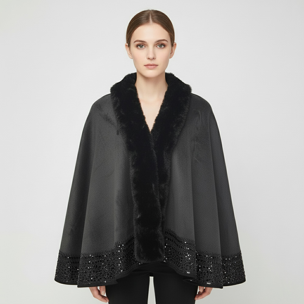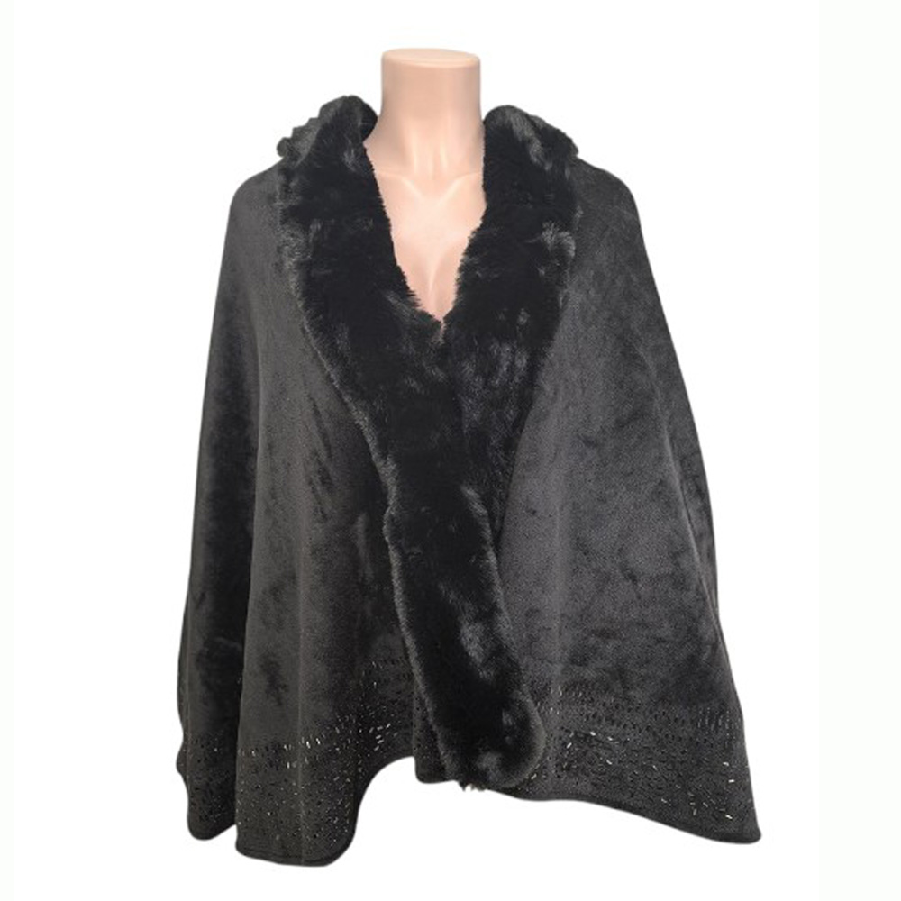 Faux Fur Trim Rhinestone Embellished Hem Poncho Shawl Faux Fur Trim Rhinestone Embellished Hem Poncho Shawl Faux Fur Trim Rhinestone Embellished Hem Poncho Shawl