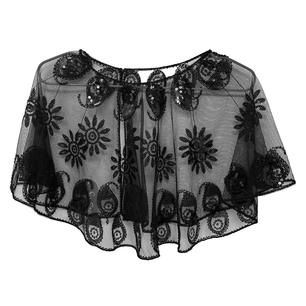 Floral Sequin Embellished Sheer Cape Shawl Top Floral Sequin Embellished Sheer Cape Shawl Top
