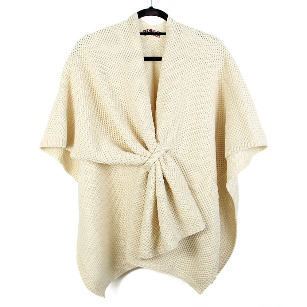 Front Tie Textured Knit Wrap Shawl Poncho Front Tie Textured Knit Wrap Shawl Poncho