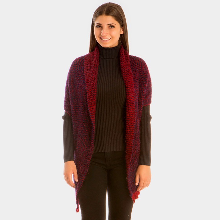 Tiny Pom Pom Embellished Crochet Ruana Poncho