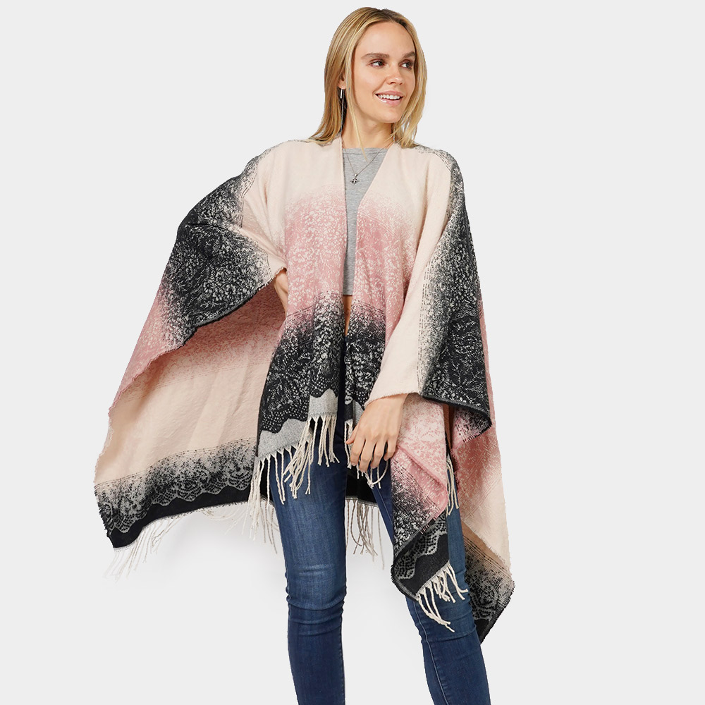 3Pairs - Round Stone Metal Hoop Tassel Fringe Earrings