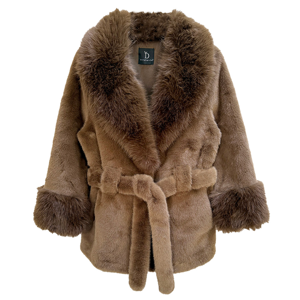Details • Size : 22.8" X 29.5" • Material : 100% Polyester • Wrap yourself in warmth and sophistication with this luxury faux fur belted coat. Designed for comfort and timeless elegance, it features a plush texture, wide lapels, and a flattering tie waist. Perfect for evening outings, special occasions, or adding chic glamour to cold-weather looks.