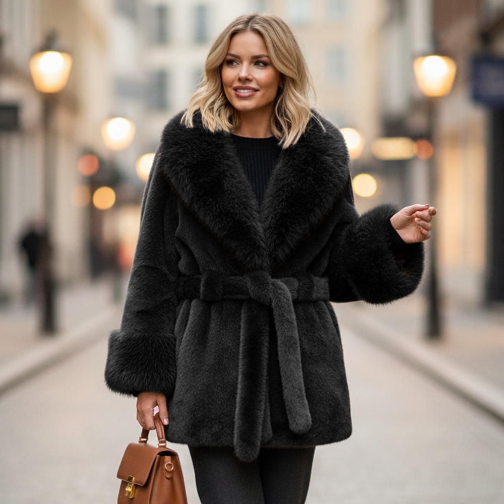 Details • Size : 22.8" X 29.5" • Material : 100% Polyester • Small: 27.5" X 22" • Medium: 28" X 22.8" • Large: 28.3" X 23.6" • Wrap yourself in warmth and sophistication with this luxury faux fur belted coat. Designed for comfort and timeless elegance, it features a plush texture, wide lapels, and a flattering tie waist. Perfect for evening outings, special occasions, or adding chic glamour to cold-weather looks.