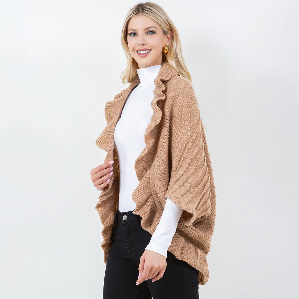 Open Front Ruffled Knit Shawl Wrap Poncho Open Front Ruffled Knit Shawl Wrap Poncho Open Front Ruffled Knit Shawl Wrap Poncho