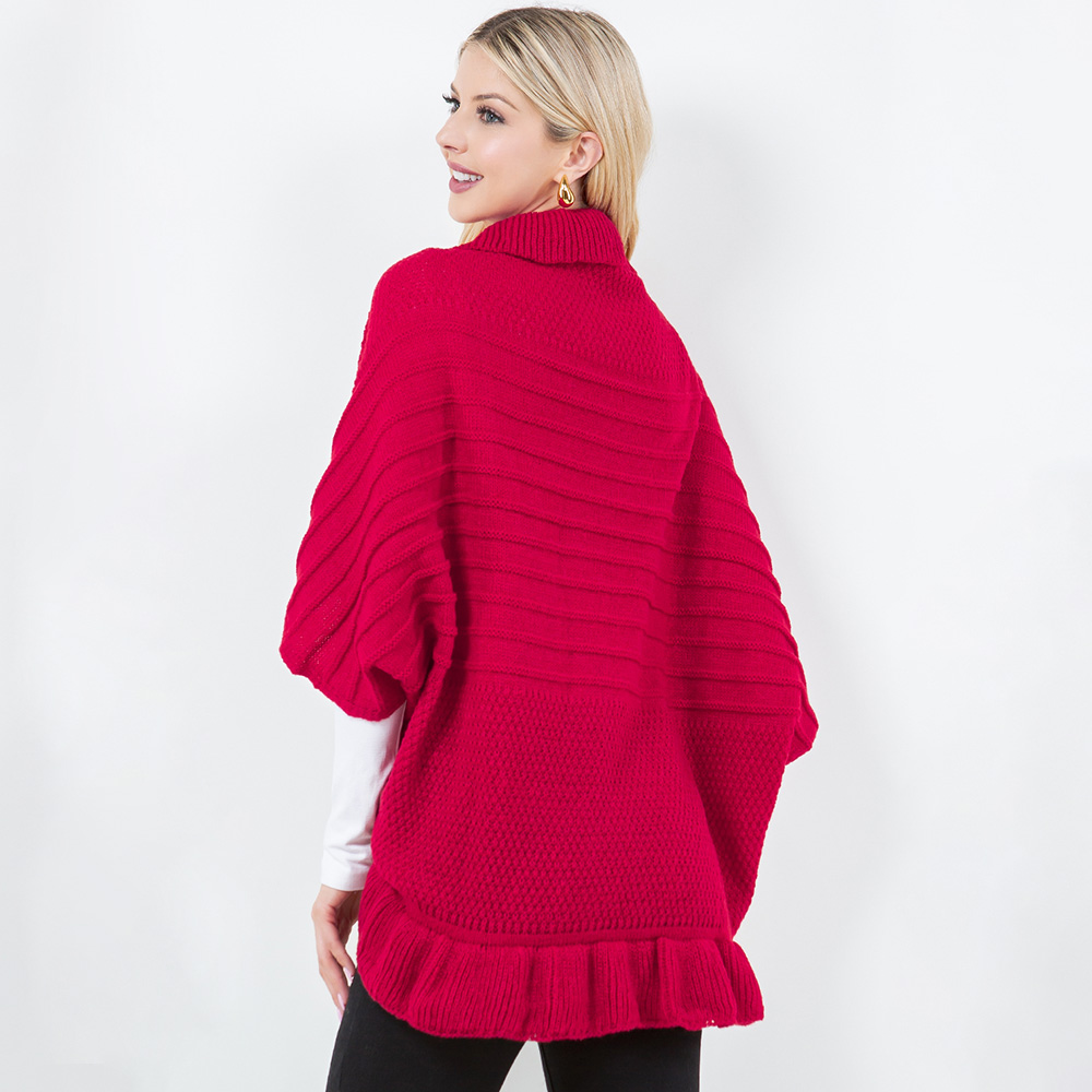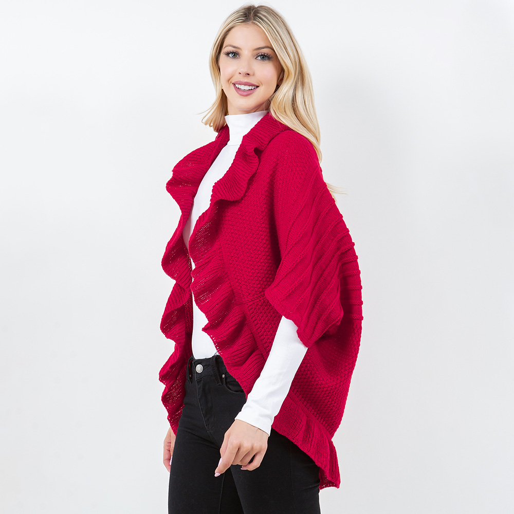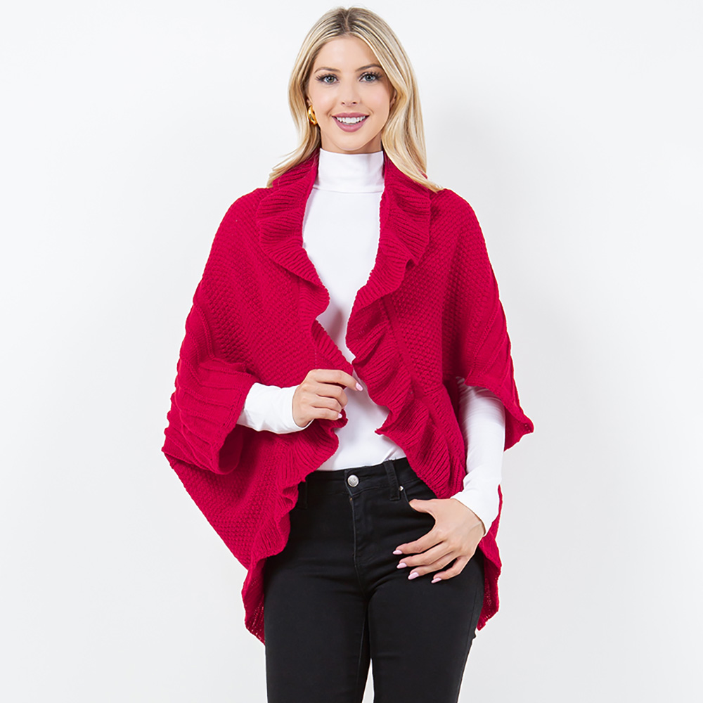 Open Front Ruffled Knit Shawl Wrap Poncho Open Front Ruffled Knit Shawl Wrap Poncho Open Front Ruffled Knit Shawl Wrap Poncho
