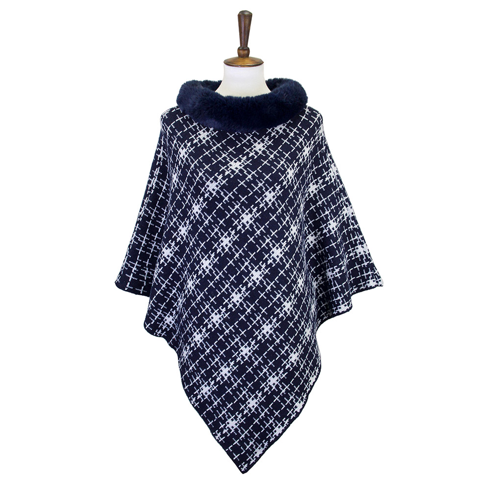 Rhinestone Embellished Fringe Faux Fur Poncho Wrap
