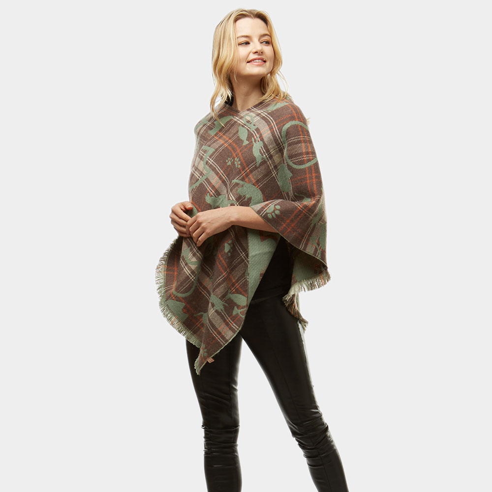 Playing Cats Plaid Poncho