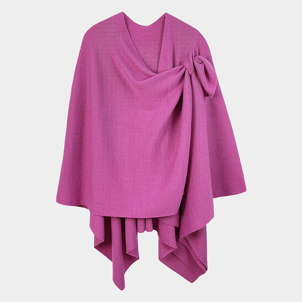• Stylish asymmetrical poncho wrap featuring a feminine side bow and soft, cozy fabric. Perfect for layering in cool weather, this versatile piece adds warmth and elegance to any outfit—ideal for casual wear, office looks, or chic seasonal transitions.