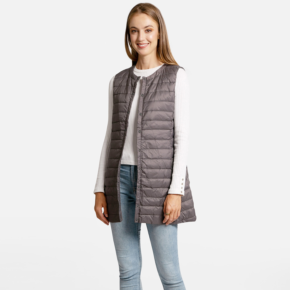 Solid Light Long Puffer Front Pockets Button Vest