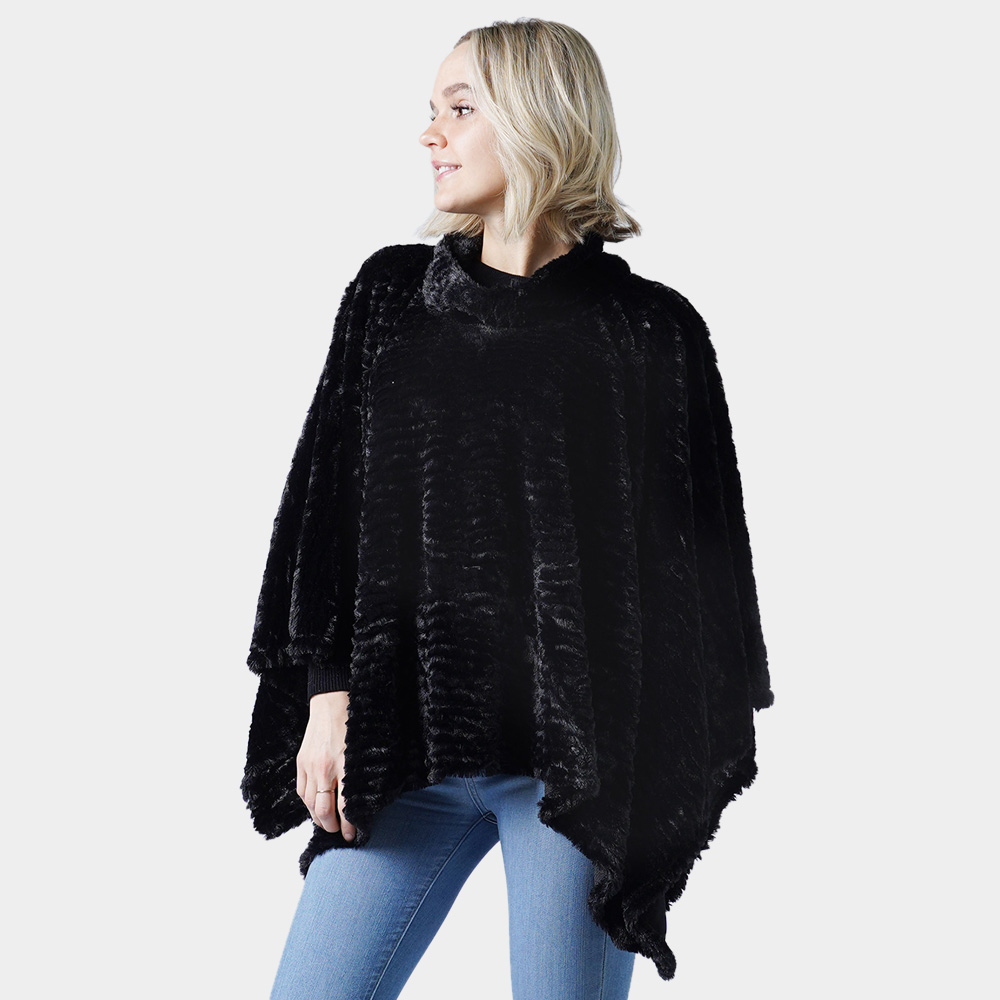 Stripe Pattern Faux Fur Poncho