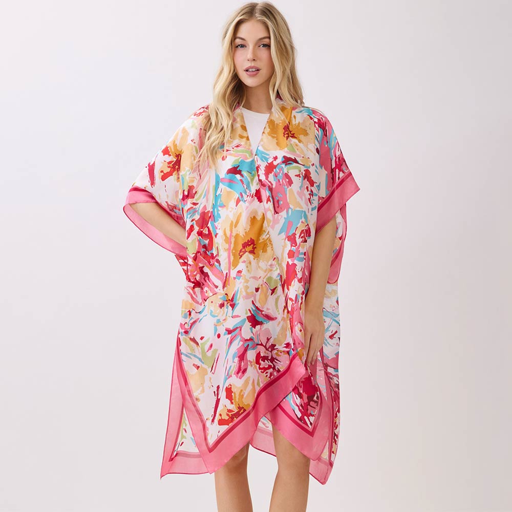 Abstract Floral Print Silky Feel Kimono Poncho Abstract Floral Print Silky Feel Kimono Poncho Abstract Floral Print Silky Feel Kimono Poncho