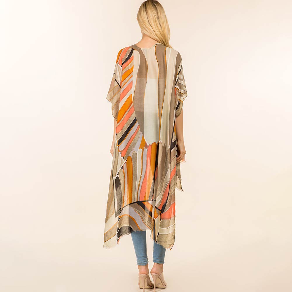 Abstract Geometric Pattern Open Front Long Kimono Poncho