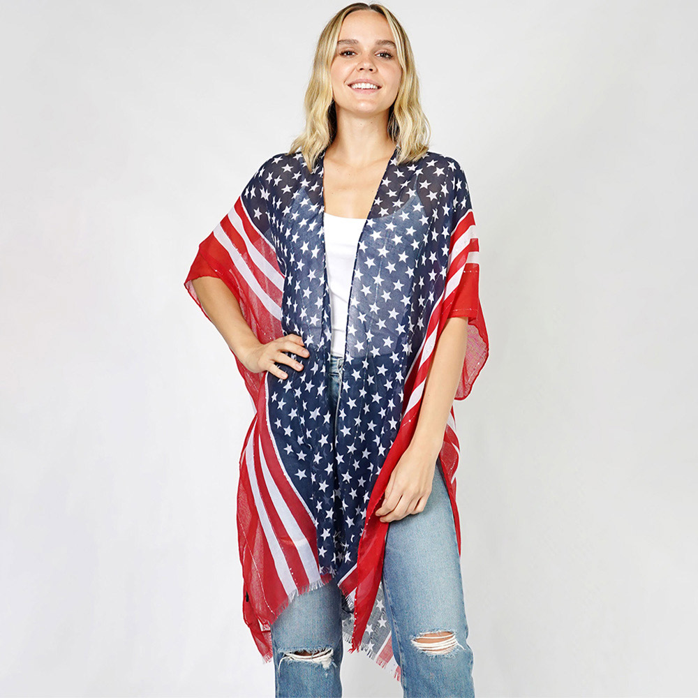 Enamel American USA Flag Heart Beaded Drop Chain Dangle Earrings