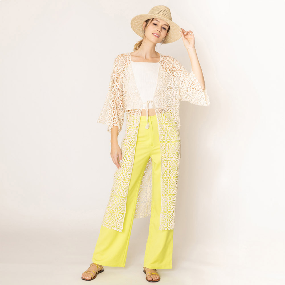 Wood Embellished Geometric Open Circle Pendant Long Necklace