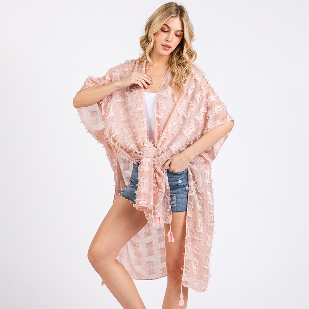 Thread Wrapped Square Hoop Drop Chain Tassel Necklace