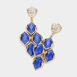 Mardi Gras Rectangle Teardrop Glass Stone Dangle Evening Earrings