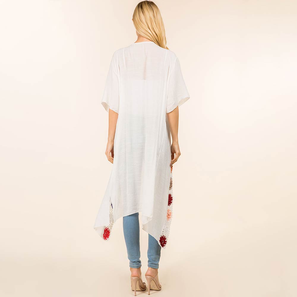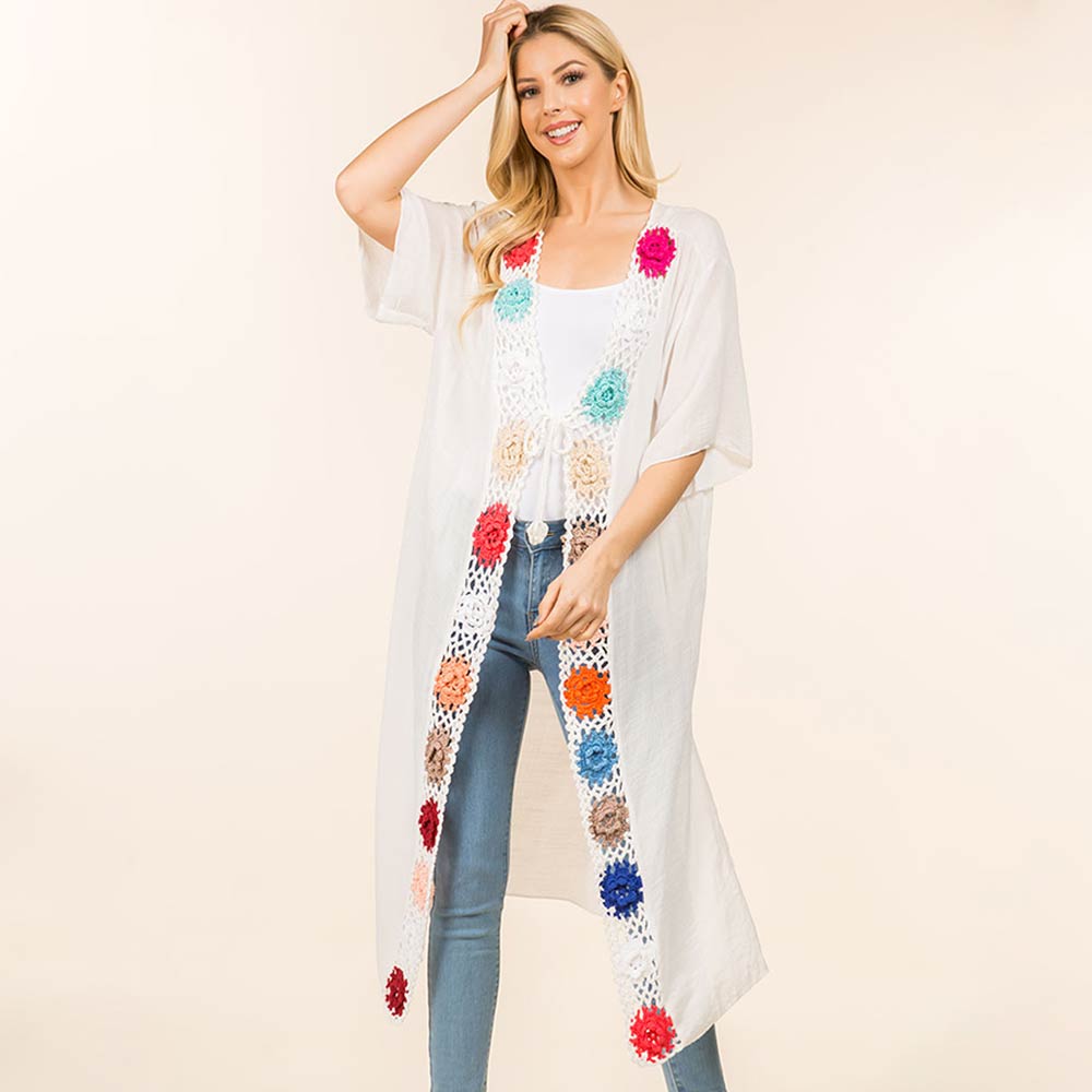 Floral Crochet Trim Open Front Long Kimono Poncho Floral Crochet Trim Open Front Long Kimono Poncho Floral Crochet Trim Open Front Long Kimono Poncho