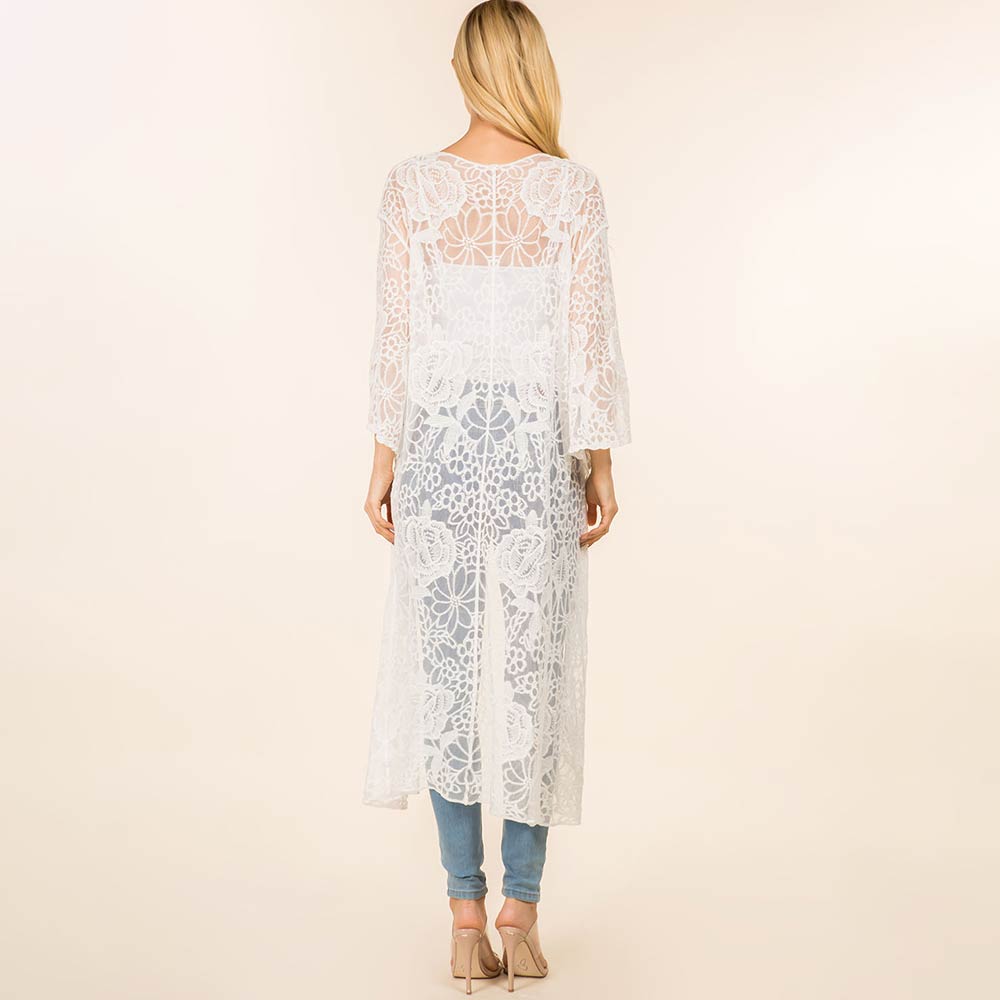 Floral Lace Open Tie Front Long Kimono Poncho Floral Lace Open Tie Front Long Kimono Poncho Floral Lace Open Tie Front Long Kimono Poncho