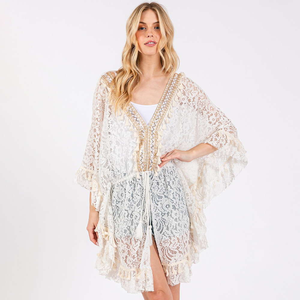 Flower Lace Tassel Deco Cover Up Poncho