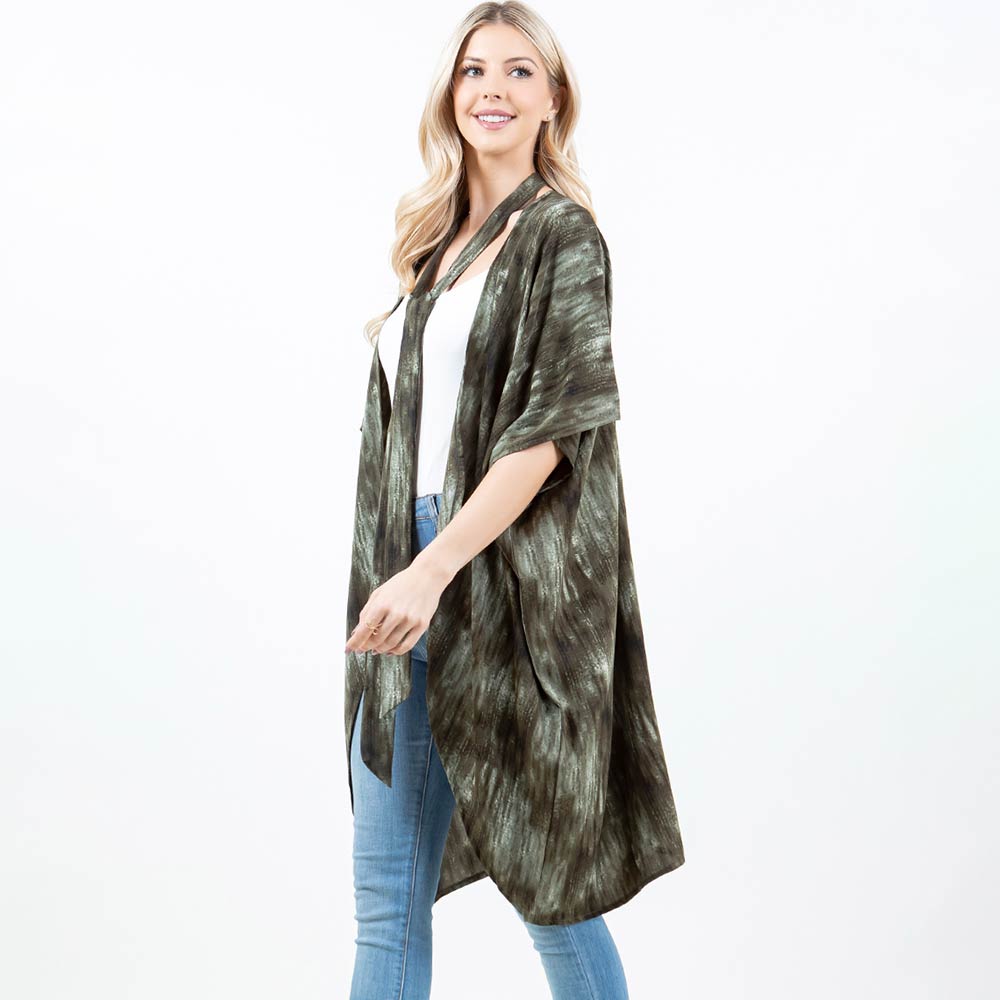 Details • Size : One Size • Material : 100% Polyester • Flowy kimono-style wrap designed with an abstract brush pattern and an open-front silhouette for effortless layering. Drapes beautifully over tops, dresses, or casual outfits for everyday wear or travel. A versatile fashion piece ideal for gifting and boutique collections seeking relaxed, modern style.
