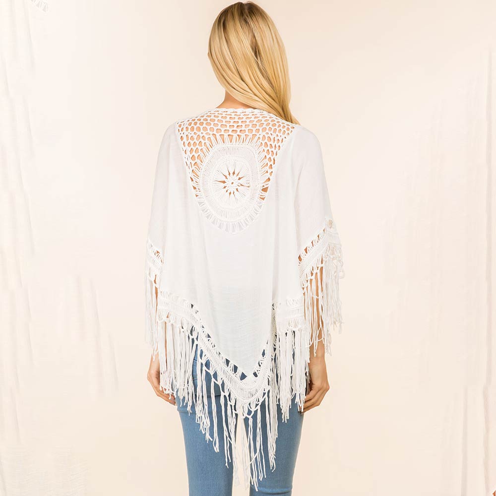 Open Front Fringe Embroidered Kimono Poncho Cardigan