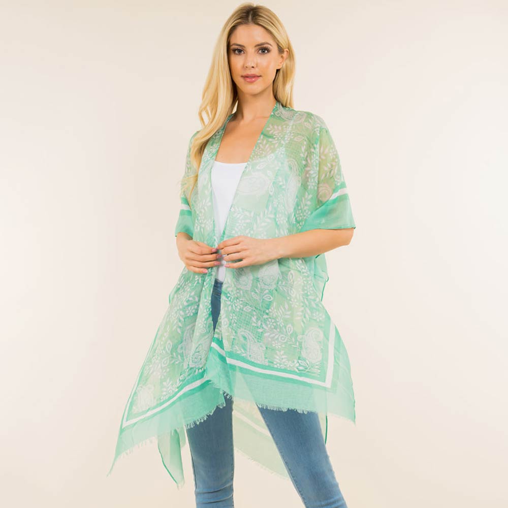 • Add effortless elegance to any outfit with this paisley print open front kimono. Designed with a flowing silhouette and lightweight drape, it layers beautifully over everyday looks. Perfect for boutique collections, this versatile piece delivers comfort, movement, and elevated style for all-season wear.