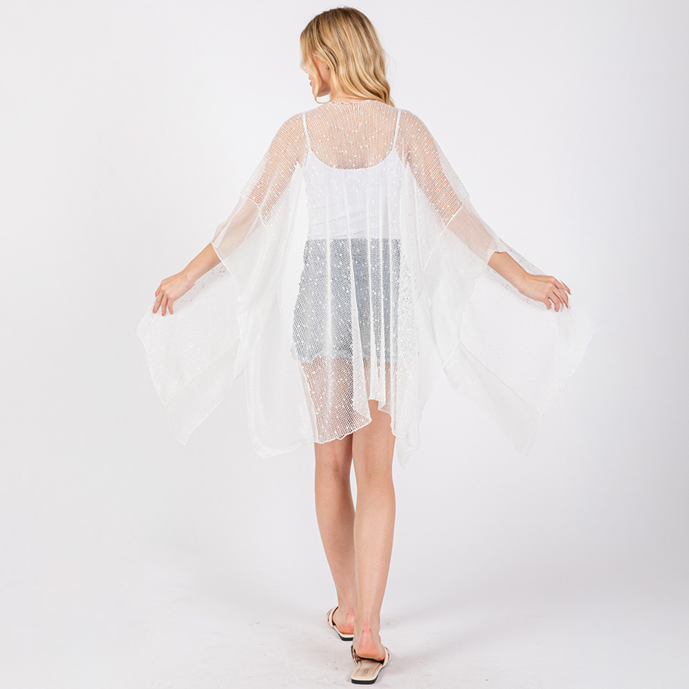 Tropical Leaf Patterned Lace Cover Up Kimono Poncho