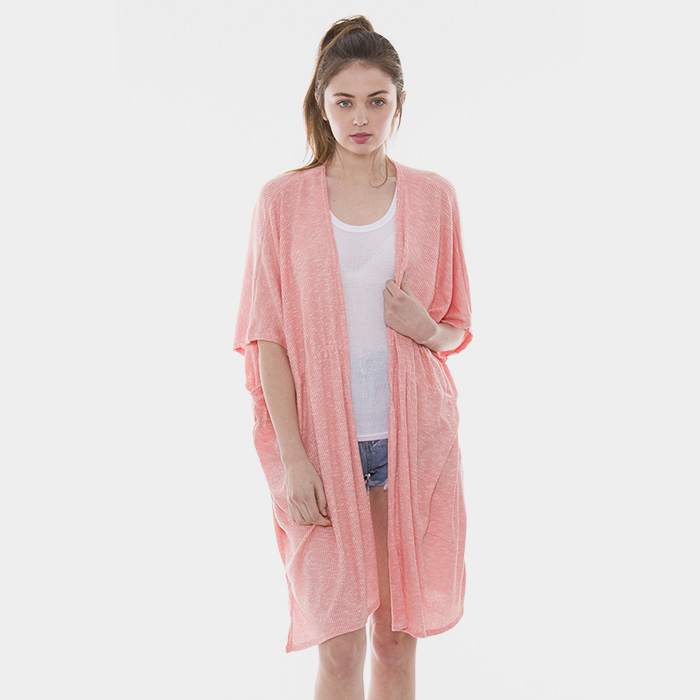 Solid Color Ripped Drawstring Cover Up Kimono Cardigan
