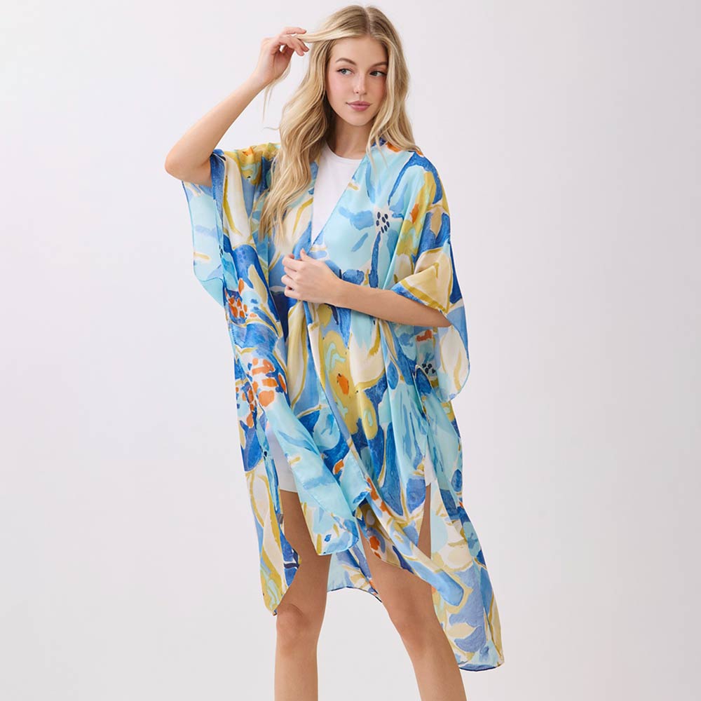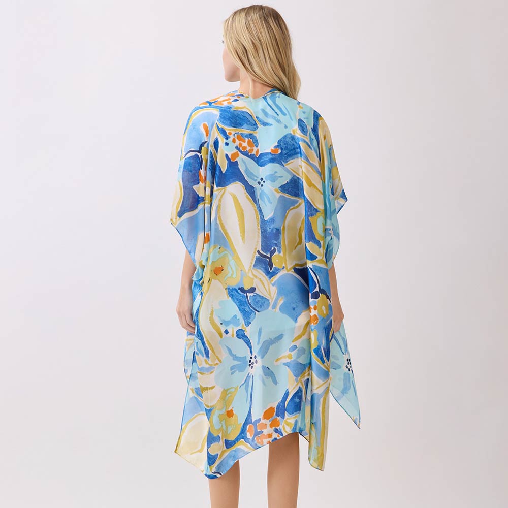Vibrant Botanical Floral Print Silky Feel Kimono Poncho