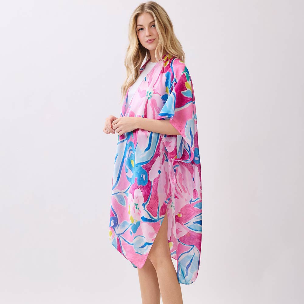 Vibrant Botanical Floral Print Silky Feel Kimono Poncho