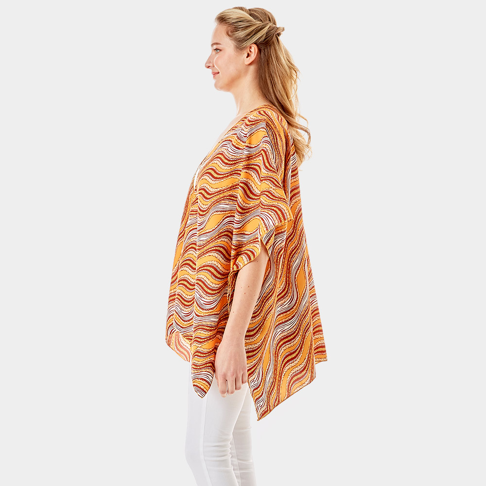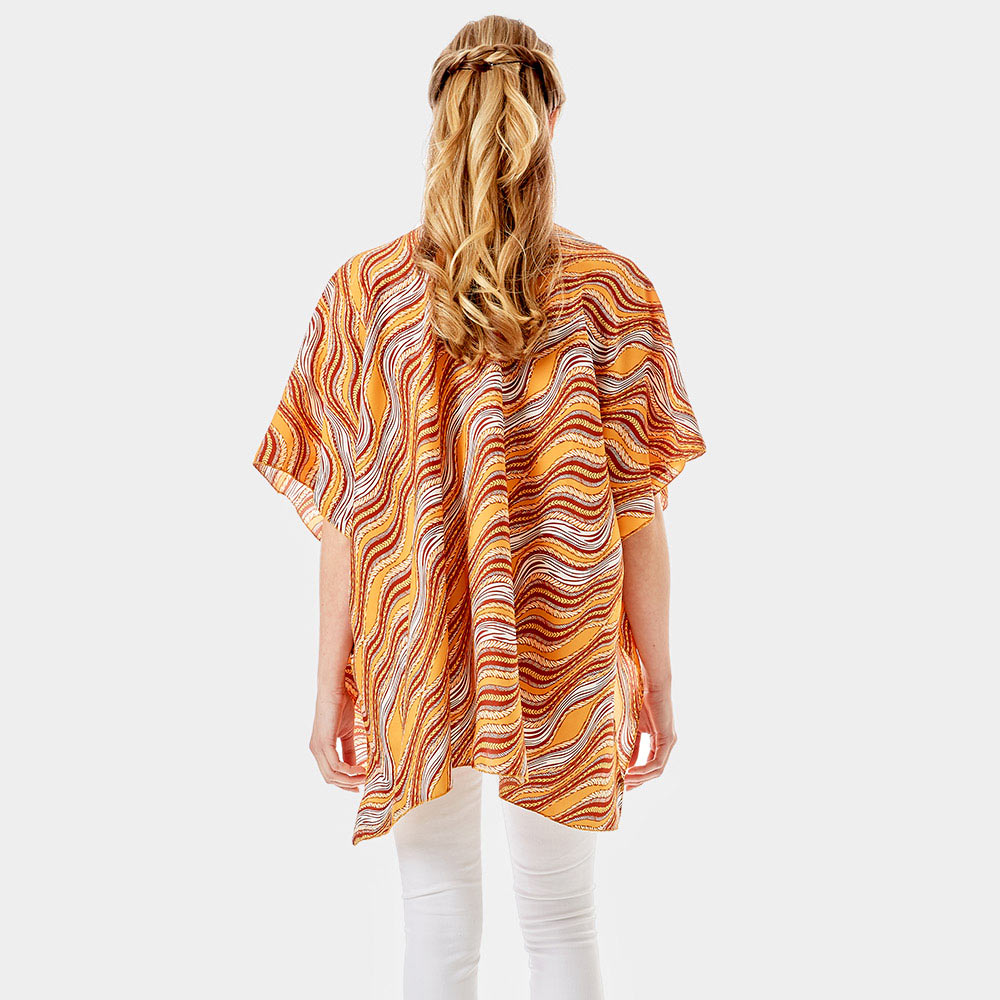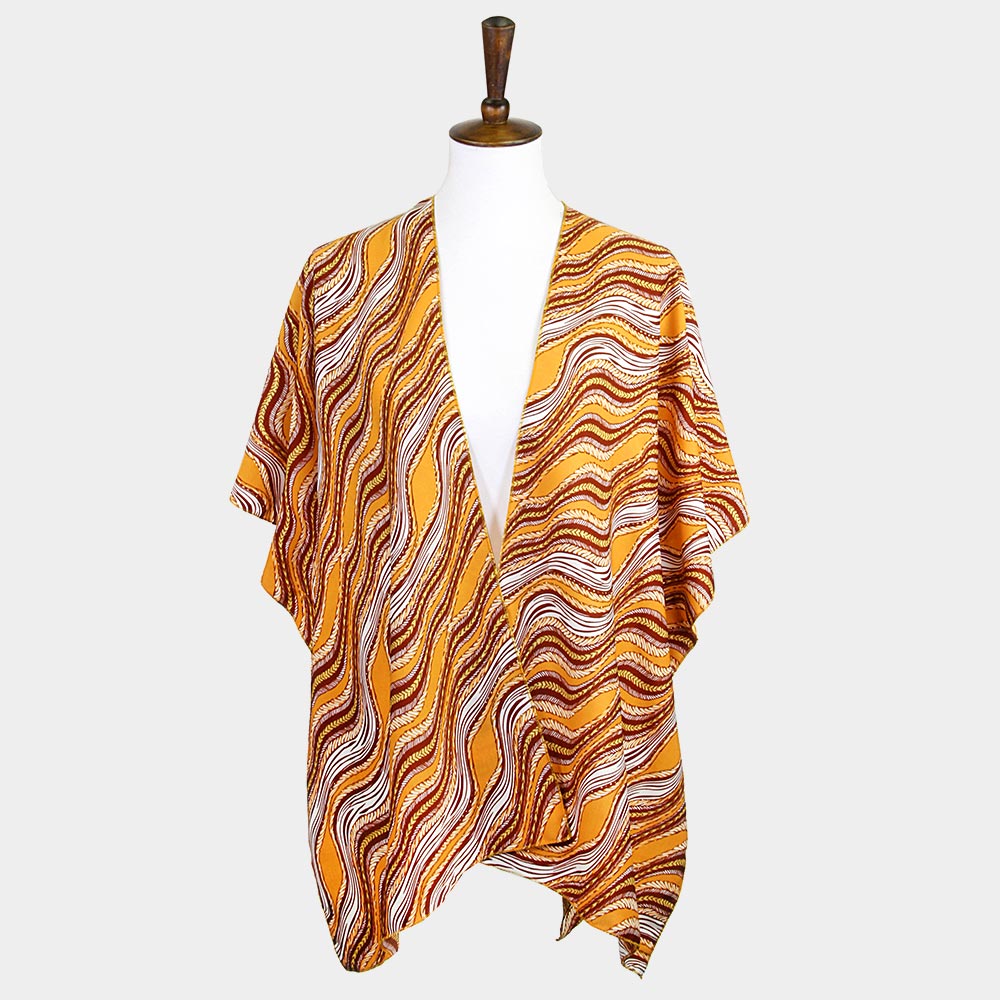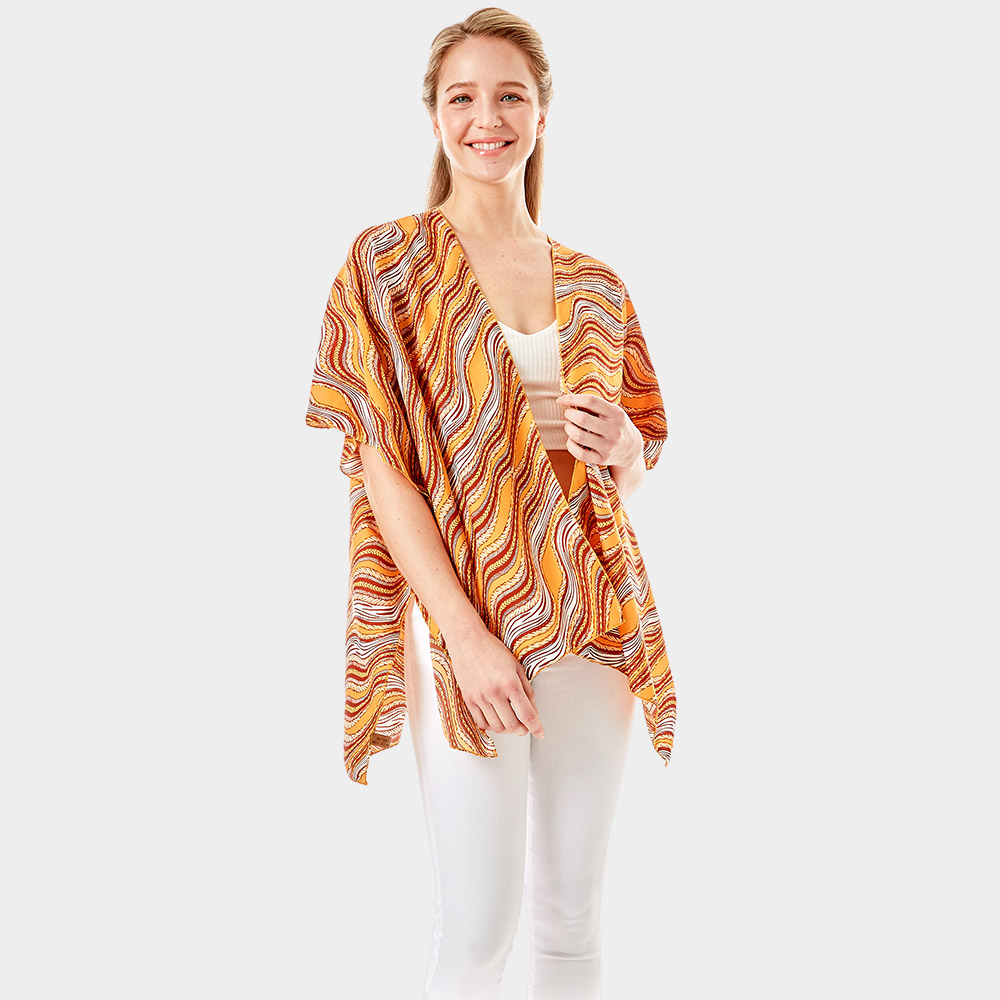 Wavy Printed Lurex Cover Up Poncho Kimono Poncho