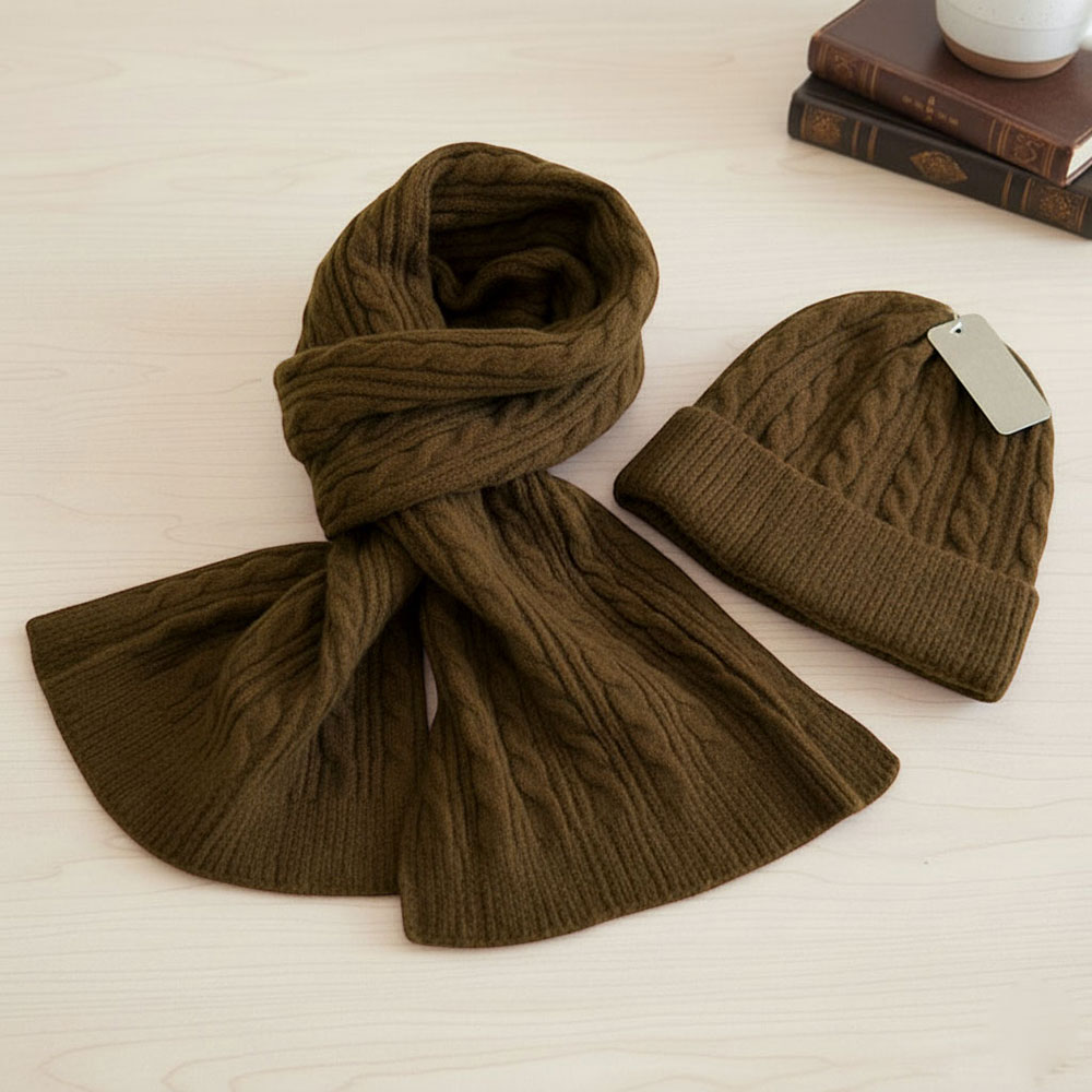 • Cozy knit scarf and beanie set featuring a classic cable pattern and soft ribbed trim. Perfect for keeping warm in style during chilly days, this matching winter accessory set adds comfort and elegance to any cold-weather outfit. Ideal for gifting or daily wear.
