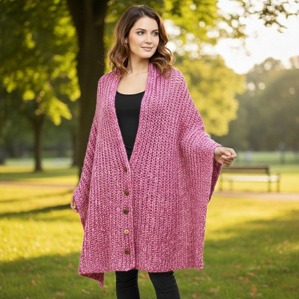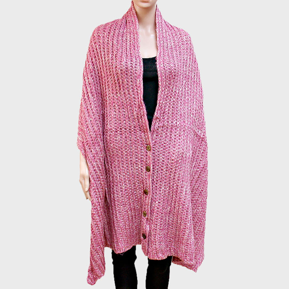 Details • Size : 25" X 82" • Fabric : Acrylic • A versatile knit wrap with functional buttons that allow multiple styling options. Wear it as a draped layer, a cozy scarf, or a relaxed poncho. Designed for effortless transitions and everyday comfort.