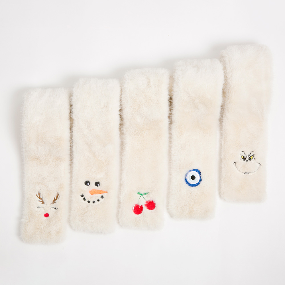 Details • Size : 4" X 34" • Soft faux fur scarf featuring an embroidered evil eye detail for a touch of charm and style. Cozy and fashionable, this scarf adds warmth and a trendy accent to any outfit, perfect for both casual and chic looks.