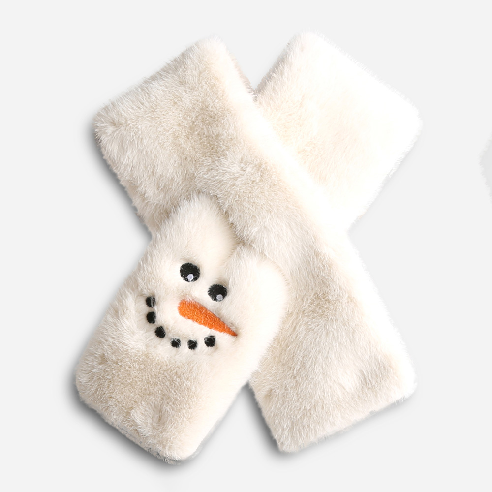 Details • Size : 4" X 34" • Add cozy charm to your winter look with this snowman scarf featuring a cheerful embroidered face. Perfect for holiday outfits, seasonal gatherings, and gifting, this soft accessory keeps you warm while spreading festive cheer.