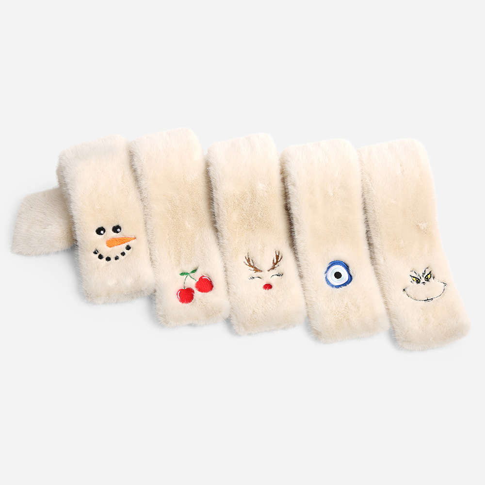 Faux Fur Plush Grinch Embroidered Pull Through Scarf