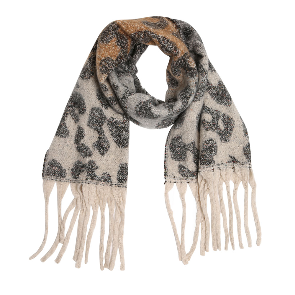 Leopard Print Oversized Fringe Chunky Oblong Scarf