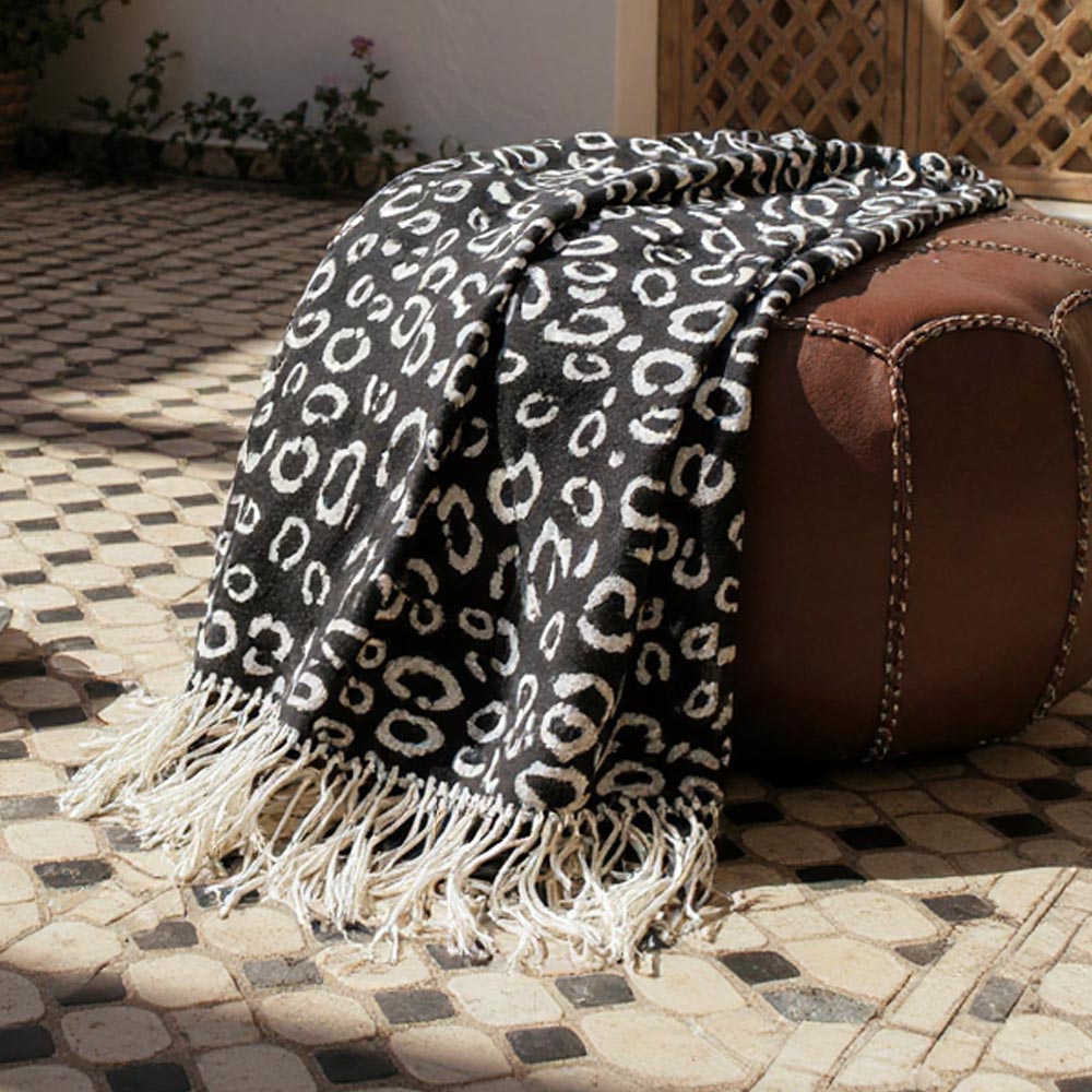• Leopard print fringed scarf designed for versatile styling and comfort. Lightweight yet cozy, this animal print wrap adds a bold accent to casual or dressy looks, perfect for layering in any season. Finished with tassel edges for added texture and effortless chic appeal.