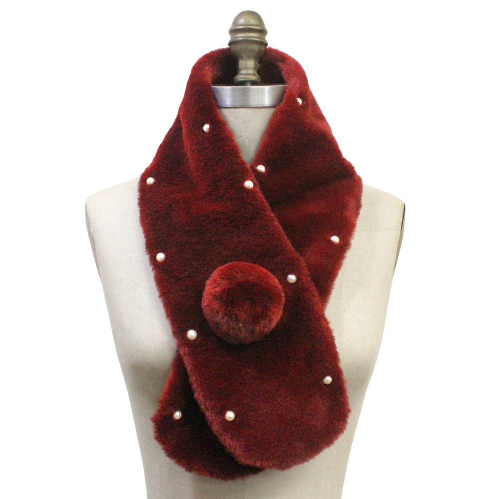 • Luxurious faux fur scarf designed with delicate pearl accents and a playful pom pom closure. This cozy and stylish winter accessory adds warmth and elegance to any outfit, perfect for cold-weather outings, festive occasions, or gifting during the holiday season.