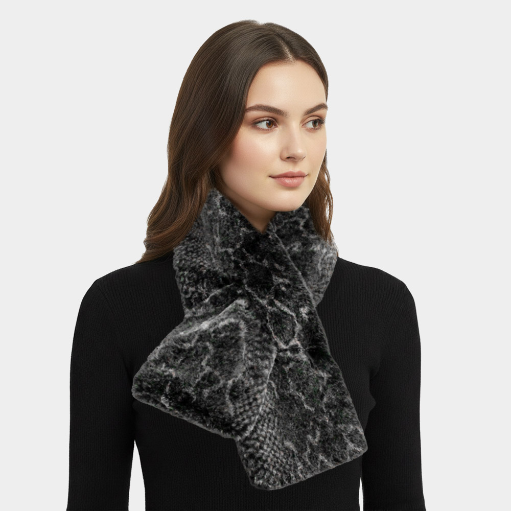 Snake Skin Patterned Faux Fur Pull Through Scarf