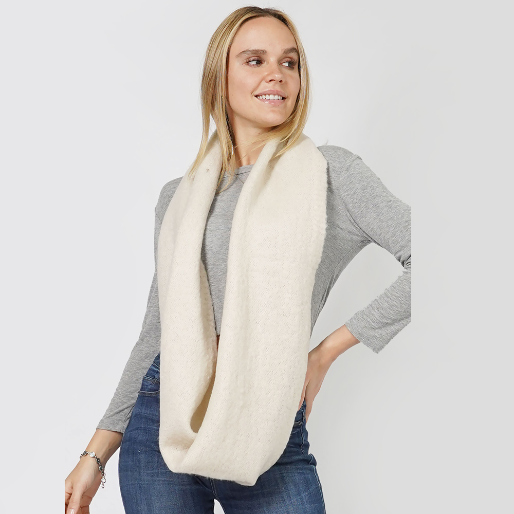 Details • Size : 13.5" X 31.5" • Material : 100% Polyester • This lightweight infinity scarf adds a cozy, modern touch to everyday outfits with its smooth looped design and comfortable feel. Perfect for layering across seasons, it offers effortless style and versatility for casual and elevated looks alike.