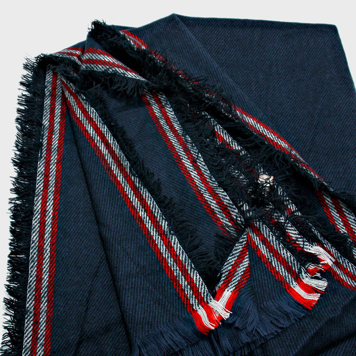 Stripe Accented Scarf with Raw Fringe Trim