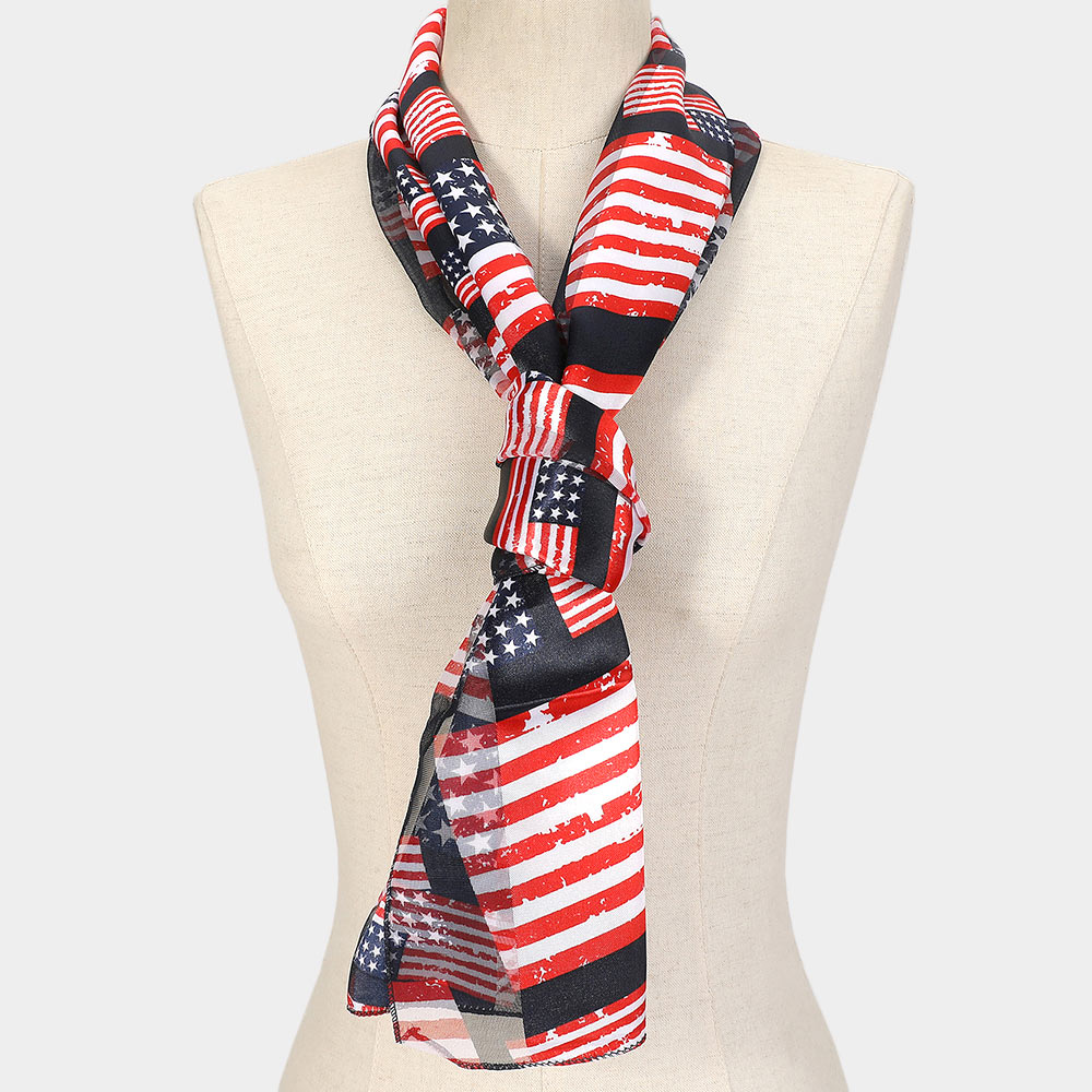 Details • Size : 40" X 72" • Material : 100% Polyester • Celebrate national pride with this stylish scarf featuring a dynamic American flag pattern. Ideal for patriotic holidays, festivals, or everyday wear, it adds a bold and expressive touch to any ensemble. Lightweight and versatile for year-round flair. • Made In Korea